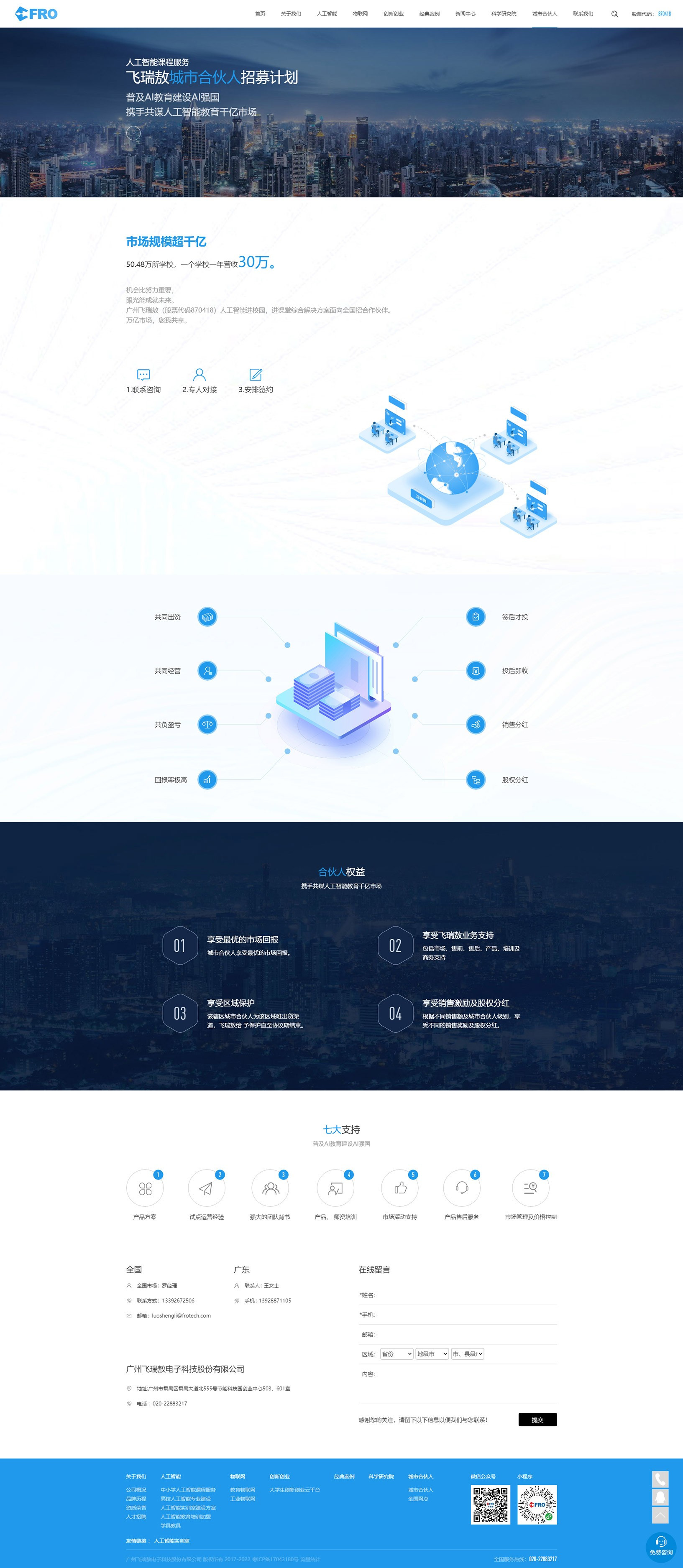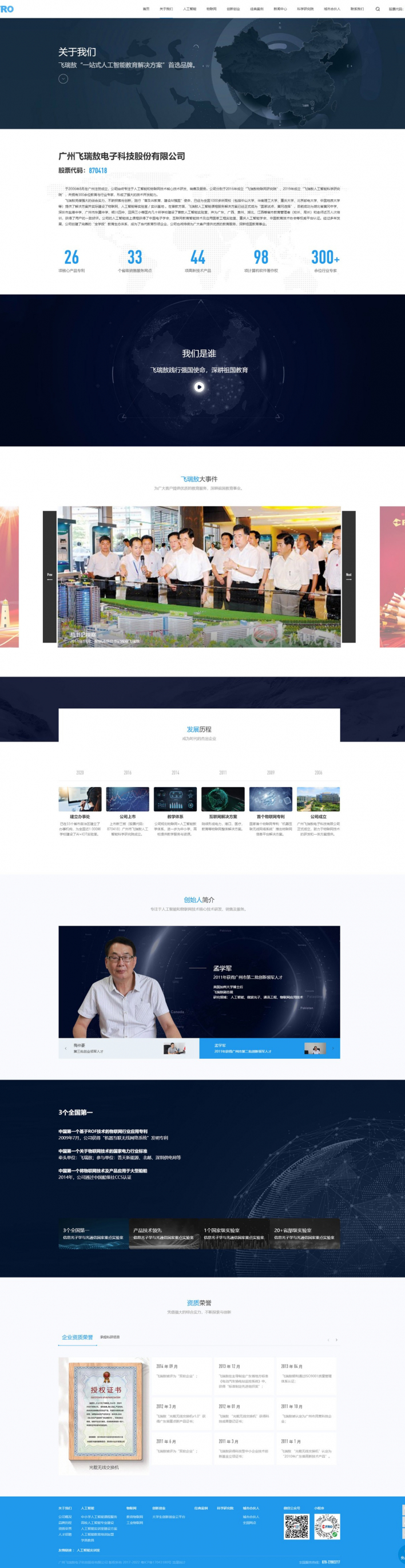 廣州飛瑞敖電子科技股份有限公司于2006年8月在廣州注冊成立,公司始終專注于人工智能和物聯(lián)網(wǎng)技術(shù)核心技術(shù)研發(fā)、銷售及服務(wù)。公司分別于2016年成立“飛瑞敖物聯(lián)網(wǎng)研究院”、2019年成立“飛瑞敖人工智能科學(xué)研究院”,并擁有300余位教育與行業(yè)專家,形成了強(qiáng)大的技術(shù)開發(fā)能力。