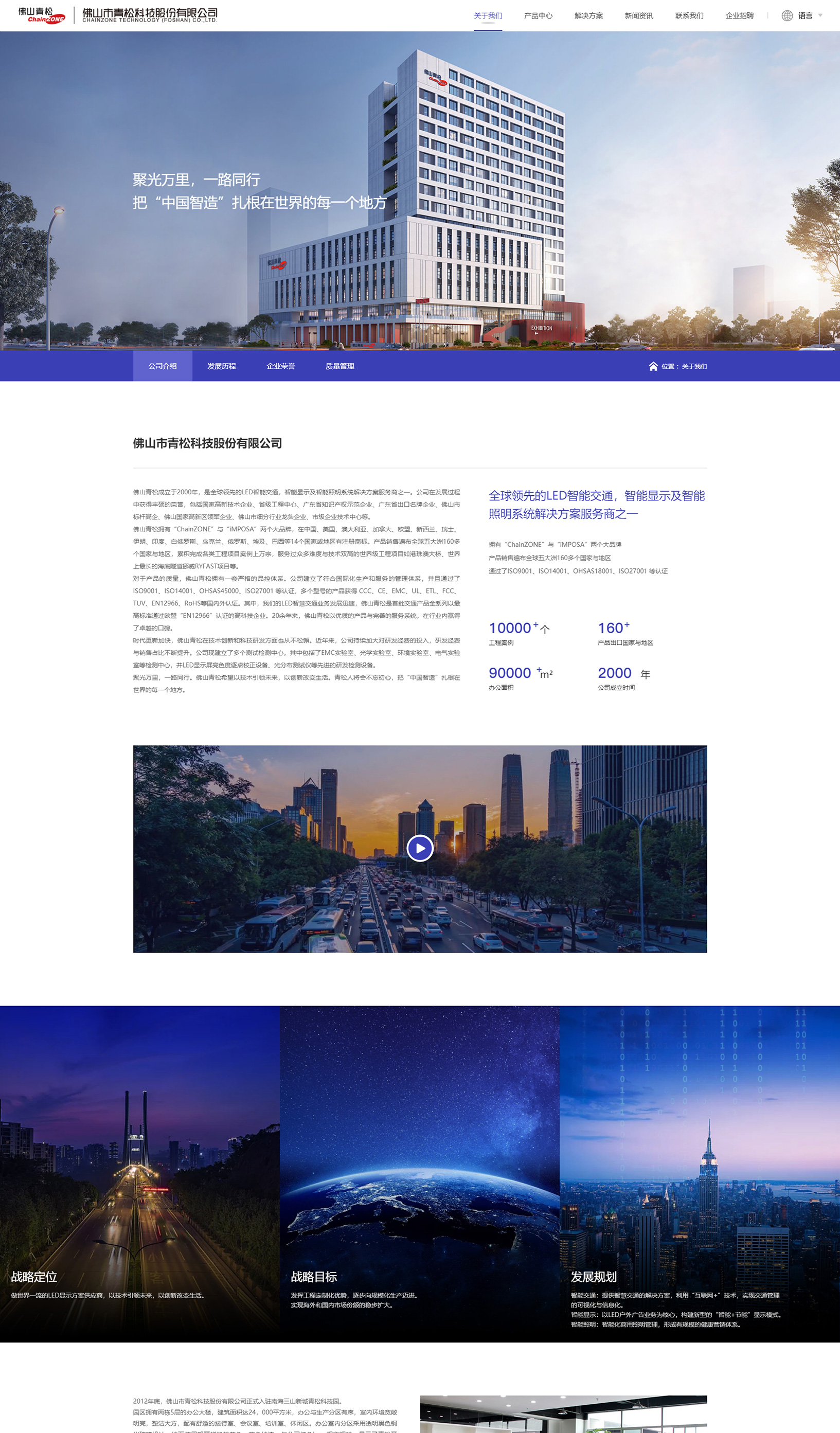 佛山青松成立于2000年,是全球領(lǐng)先的LED智能交通,智能顯示及智能照明系統(tǒng)解決方案服務(wù)商之一。公司在發(fā)展過程中獲得豐碩的榮譽,包括國家高新技術(shù)企業(yè)、省級工程中心、廣東省知識產(chǎn)權(quán)示范企業(yè)、廣東省出口名牌企業(yè)、佛山市標(biāo)桿高企、佛山國家高新區(qū)領(lǐng)軍企業(yè)、佛山市細分行業(yè)龍頭企業(yè)、市級企業(yè)技術(shù)中心等。